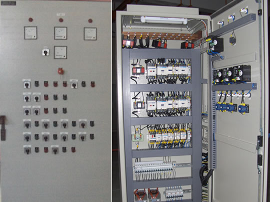 Makinaların tüm işlemlerini kontrol eden operatör panelli PLC, kontaktör, zaman rölesi, sensör, v.b. elemanlarla tasarlanan panolar